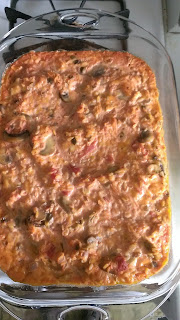 My cousin mentioned a few weeks ago (on facebook) that she was planning to make this dish for dinner that night. I asked and she found the recipe for me and I'm so glad she did. It's a fairly easy dish to throw together and very tasty! I used regular (as in not minute) rice as that's what I had in the cupboard. I used an 8 oz package of pre-sliced mushrooms (which yields slightly more than the two cups the recipe calls for, but I like mushrooms), and two 4.5 oz cans of chicken. Yes, cooking the chicken myself would have probably given it a slightly better flavor, but with the sour cream, salsa, and cheese, it wasn't that noticeable (and certainly easier since I didn't have any leftover chicken on hand). I also guessed at the 4 oz of cheese, just used about half (well, a little bit more than half) of the package. The recipe doesn't state (and none of the comments I looked at really said) the size of the casserole dish. I ended up using a big mixing bowl to get everything evenly incorporated, but my square baking dish (approximately 8x8, 2 quart). One comment did mention adding some chips (to make it more presentable, which I don't think is necessary - it looks fine the way it is!) but which I think would be tasty. Others also mentioned adding black beans, black olives, corn, green onions, and hot sauce - which I think would make for a very different dish! Alas, I've gotten out of the habit of blogging recipes, so I completely forgot to get a picture! (edited 8-18-13 to add photo - recipe shown doubled, in a 13x9 dish).INGREDIENTS: